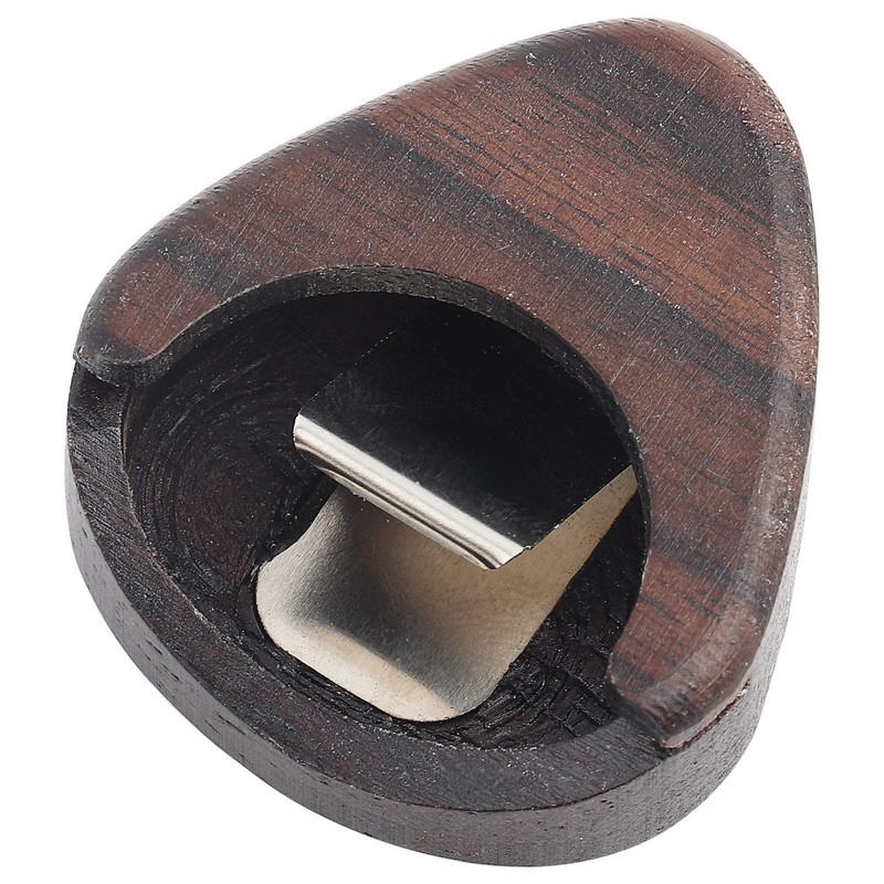 - GUITAR PICK HOLDER: Designed as a guitar pick holder on guitar with robust construction, this rose wood case ensures pick security during performances. Its reinforced structure withstands rigorous strumming while maintaining stable positioning