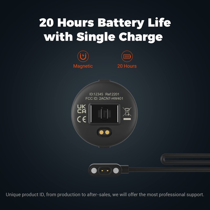 - 【Ultralange Akkulaufzeit】Das HW401 Herzfrequenzmess-Armband wird mit einem wiederaufladbaren Akku und einem magnetischen Ladekabel geliefert. Ermöglicht bis zu 20+ Stunden Dauerbetrieb mit einer einzigen Ladung, Erfüllt die Anforderungen von Langzeittraining oder Wettkampf. Sparen Sie viel Geld für die Batterie!