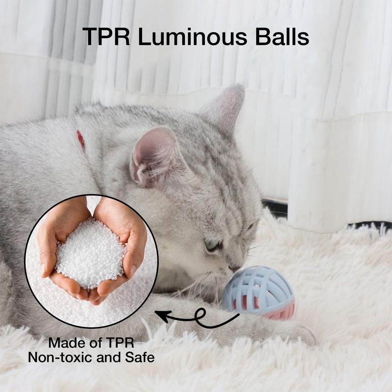 - Color Blocking Design:The multicolor designs that add an extra layer of excitement to playtime. The playful appearance of the cat balls enhances your cat’s playtime experience,doing many cat games.It can also help in easily locating the toy around the house