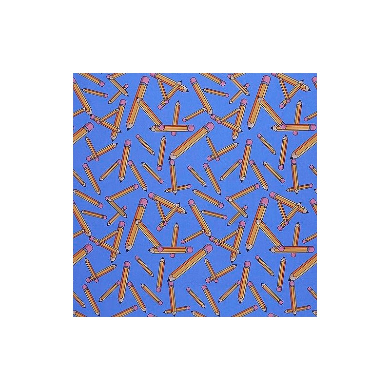 Mook Fabrics Cotton Back to School Tossed Pencils, Blue Cut by The yard