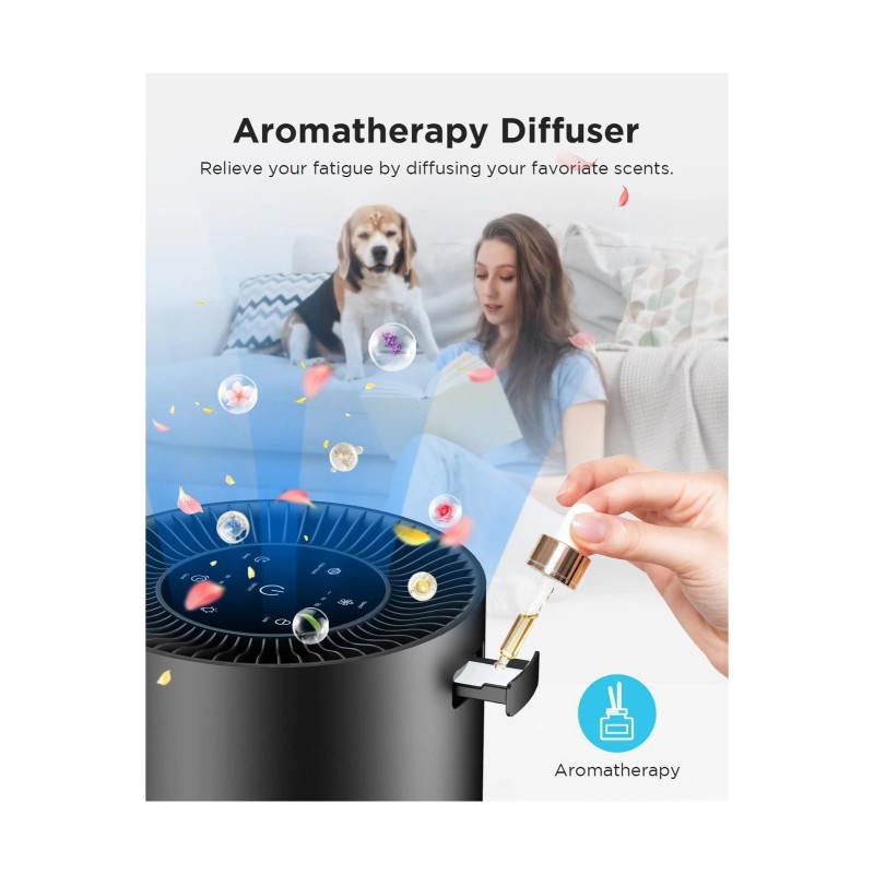 - 3-STAGE FILTER, POWERFUL PURIFICATION: All visible and invisible pollutants in the air can be purified. Pre-Filter filters pets fur, lint, fibers, hairs; H13 HEPA Filter captures pollen, pet dander, dust; Activated Carbon Filter cleans smoke, fumes, VOCs, pet odors, cooking smells, etc.