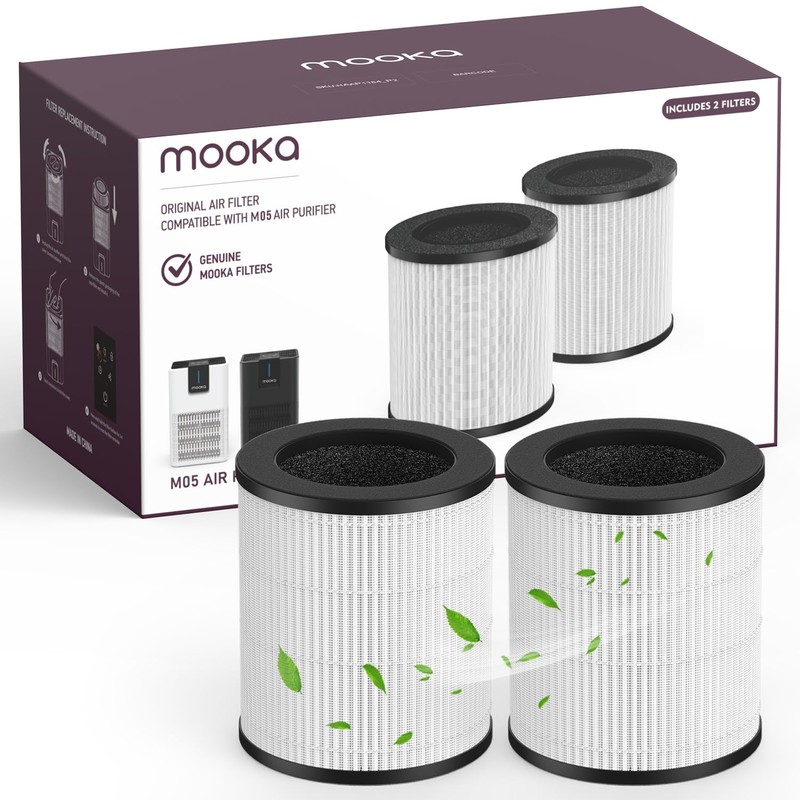 - 2 Pack MOOKA Air Purifier Replacement Filter: Official certified replacement filters for the MOOKA M05 H13 true HEPA air purifier-1 Pack filter ASIN: B0CXJ9R27Q. 2 Pack Filter ASIN:B0FB7YQP1V