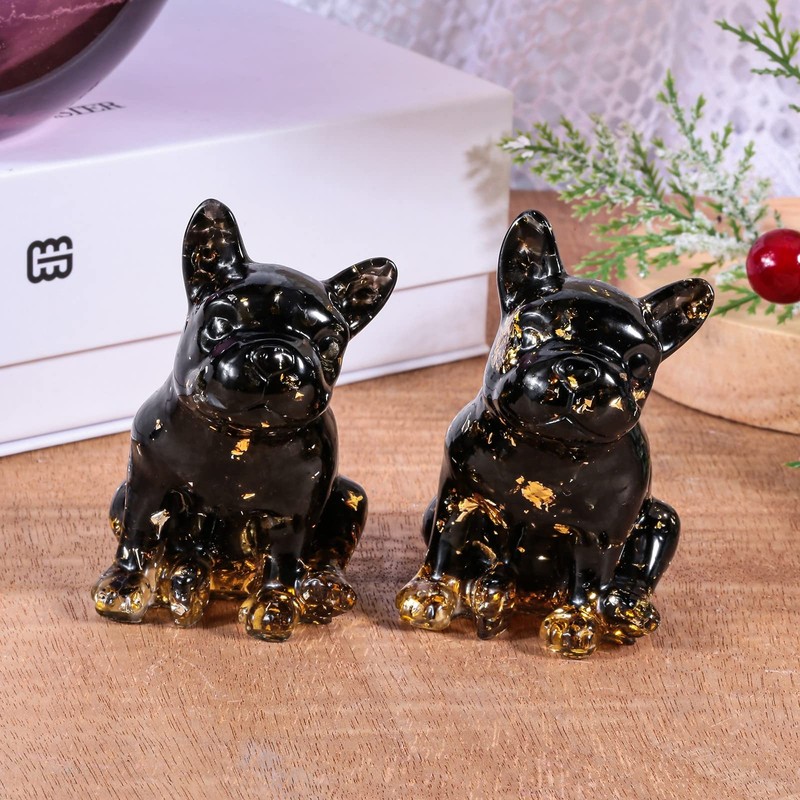 - French Bulldog Puppy Sitting Figurine: The cute dog figurine is made of crystal chip stones and resin. It is designed to sit stably on the table as if listening to your conversation. Different material for you to choose. The golden foils makes it shinny and eye-catching for decor.
