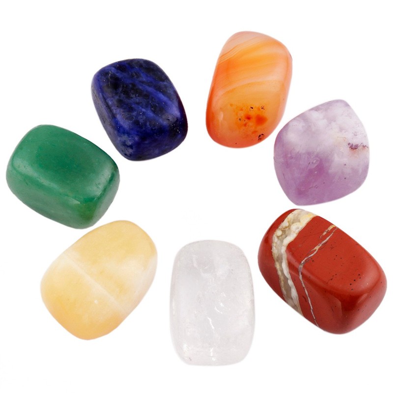 - 7 Chakra Palm Stone Set - Ein Set enthält 7 Taschensteine. Amethyst - Brauen - Chakra, Bergkristall - Kronen - Chakra, Sodalith - Hals - Chakra, grünes Aventurin - Herz - Chakra, gelbes Jade - Solarplexus - Chakra, Karneol - Sakral - Chakra, rotes Jaspis - Wurzel - Chakra. Vervollkommnen Sie für eine Haus- oder Gartendekoration, ein Amulett, einen Glücksbringer, Kristallgitter