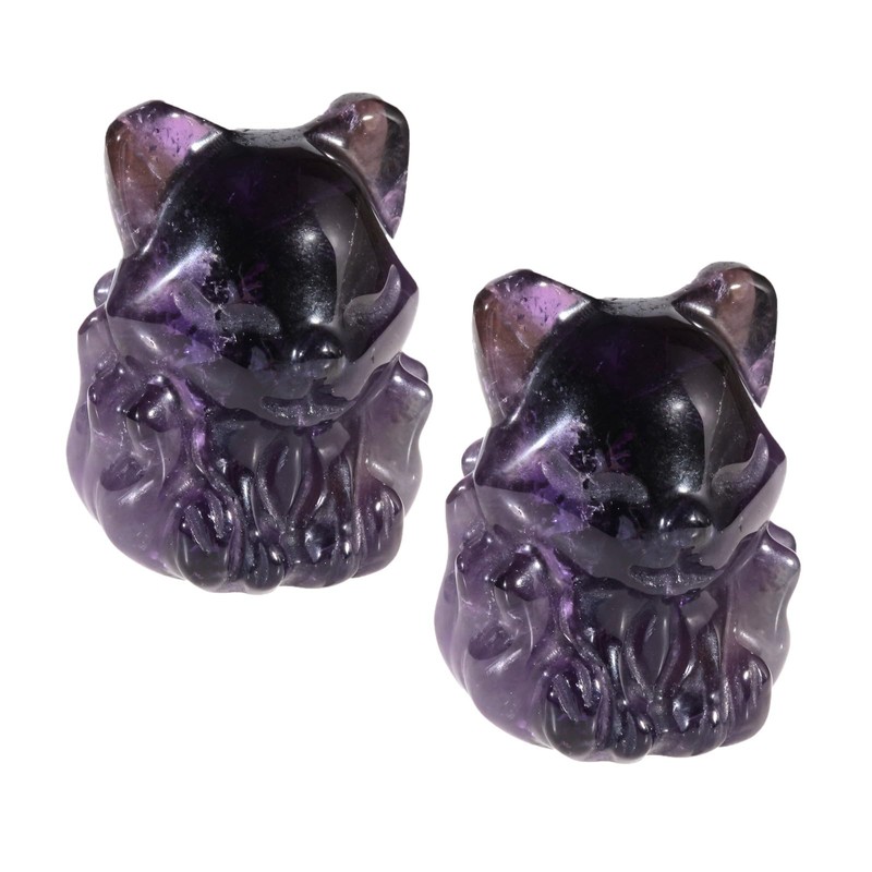 mookaitedecor Pack of 2 Amethyst Crystal Nine Tailed Fox Figurine, Hand Carved Animal Statue Stone Craft Sculpture Ornament for Home Office Decor
