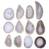 - Pack of 12 pcs agate geode slices, measures approx 1.7-3 inches(45-80mm) in length, 0.78-2 inches(20-50mm) in wide, 0.075 inches(2mm) in hole. Weights approx 15-50 grams per piece. Each slices varies in size, shape and color, you will receive ones similar to the image shown