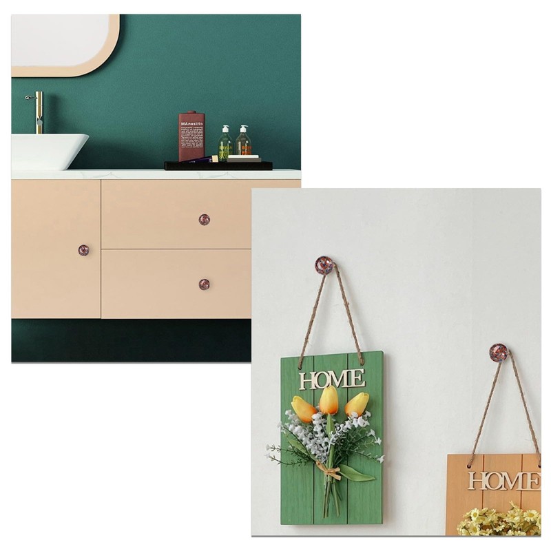 - Crystal Sphere Stone Cabinet Knobs: The striking crystal material exudes a sense of sophistication, making a bold statement without overpowering the overall aesthetic. Natural chip stones will be filled into the round resin, adds an additional element of visual interest which will certainly elevate the appeal of any furniture for who appreciates the finer details in home decor.