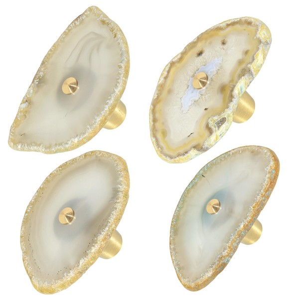 mookaitedecor Set of 4 Natural Agate Crystal Drawer Knobs with Screws, Irregular Crystal Stone Knobs Handles Pulls for Cupboard Cabinet Wardrobe Kitchen Unique Decorative Furniture Brass Knobs