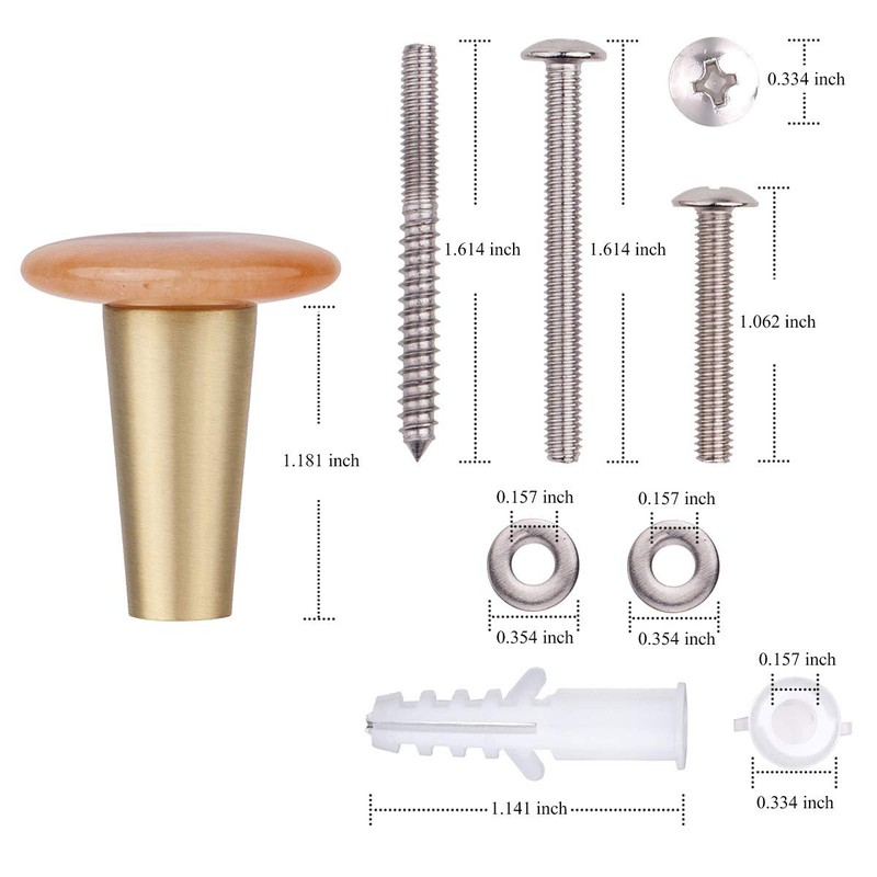 - 『Size Details for Drawer Pulls』Total height of a knob is 35mm/1.37". Brass projection is 30mm/1.2" in height and 15mm in width. Stone is 30mm/1.2" in diameter. Weight 45-50g/pc. Normal screws come with 2 lengths(27mm and 41mm). Headless screw is 41mm in length. Please confirm the size again before purchase.