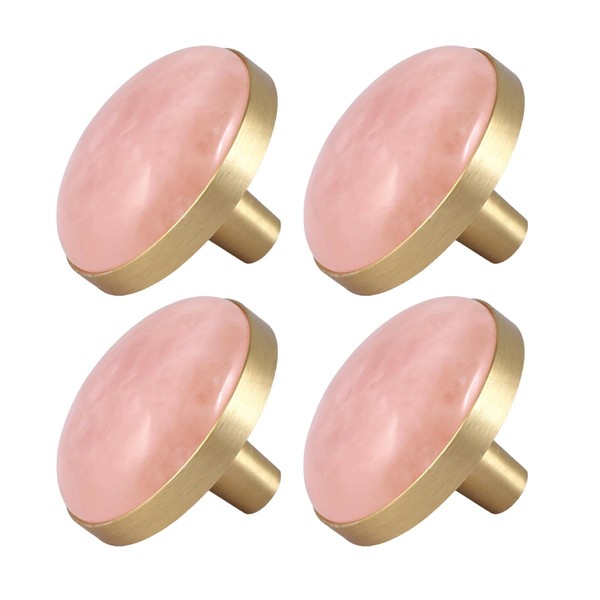 mookaitedecor Set of 4 Rose Quartz Round Drawer Knob 37 mm Crystal Stone Cabinet Knob Pulls Handle