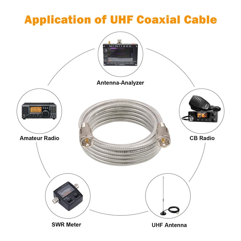- ⭐Applications -- This cb antenna cable is widly used for any 50 Ohm RF system,such as vhf marine antenna,cb radio,ham radio,vhf radio,antenna analyzer,antenna transceiver,monitor,antenna tuner,dummy load,SWR meter and ect.