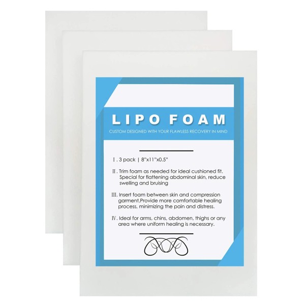 LIPOSUCTION FOAM SHEETS: Measures 8'' x 10.5''. We recommend purchasing 3 or more sheets at a time. Ideal for arms, chins, abdomen, thighs or any area where uniform healing is necessary.