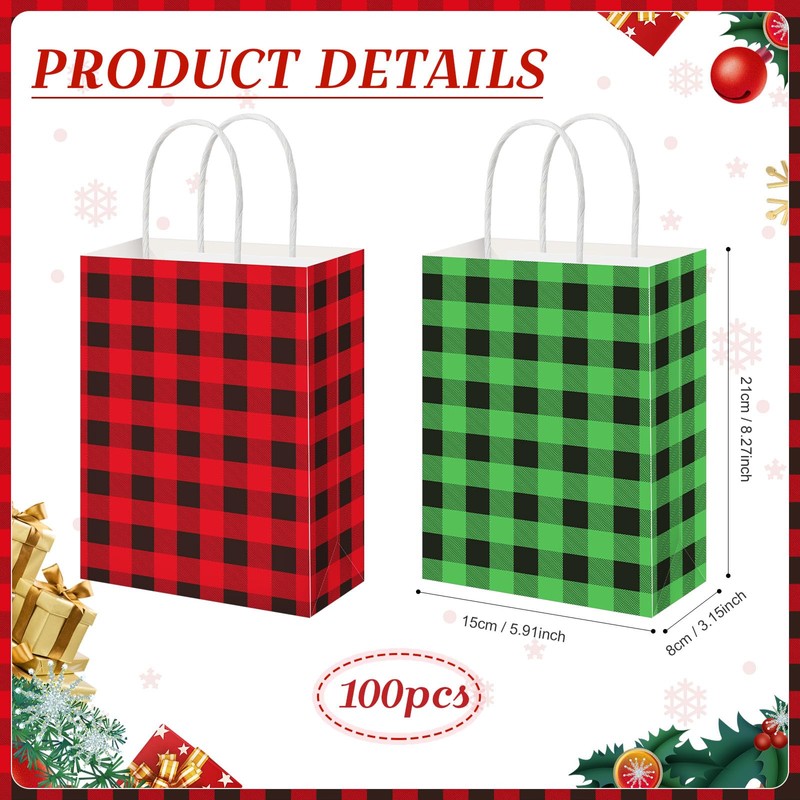 - Sufficient Quantity: you will receive 100 pieces Christmas buffalo plaid gift bags in 2 different colors, sufficient quantity and classic designs to meet your Christmas party decoration and Christmas gift packing needs