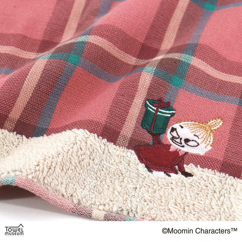 Moomin Towel Museum Check Gift Towel Handkerchief, Red, Package Included, My Gauze Pile, 5-Star Quality, Approx. 9.8 x 9.8 inches (25 x 25 cm)
