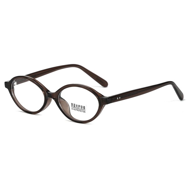 moomoobird Blue Light Glasses Women Men Oval Small Glasses Frame TR90 Retro Glasses Acetate Temple, Brown With Clear