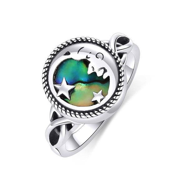 Moon and Star Urn Ring for Ashes 925 Sterling Silver Abalone Shell Memorial Keepsake Rings Cremation Jewellery Gift for Women Men Mother, Sterling Silver
