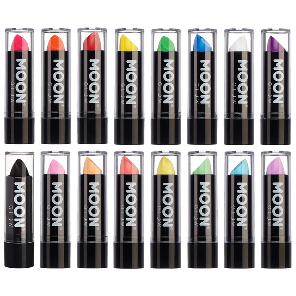 Moon Glow - Blacklight Neon UV Lipstick 0.16oz Set of 16 colours (Pastel & Intense) – Glows brightly under Blacklights/UV Lighting!