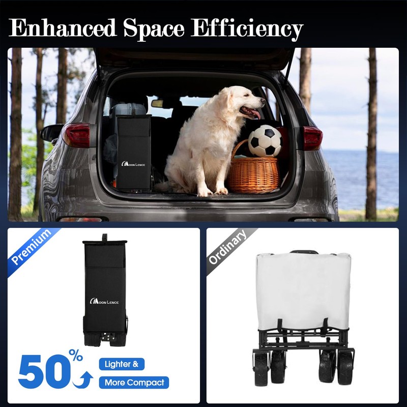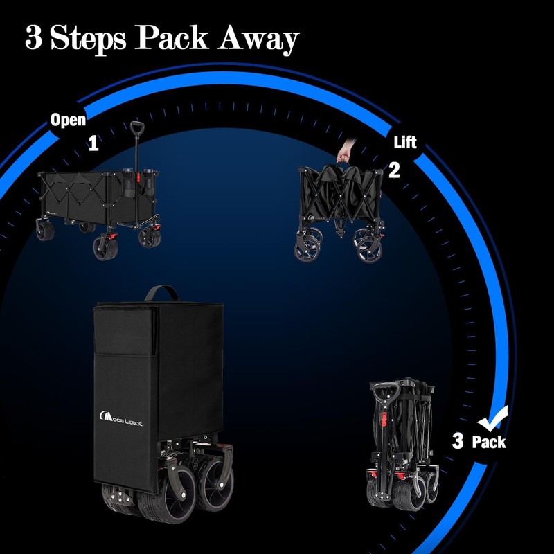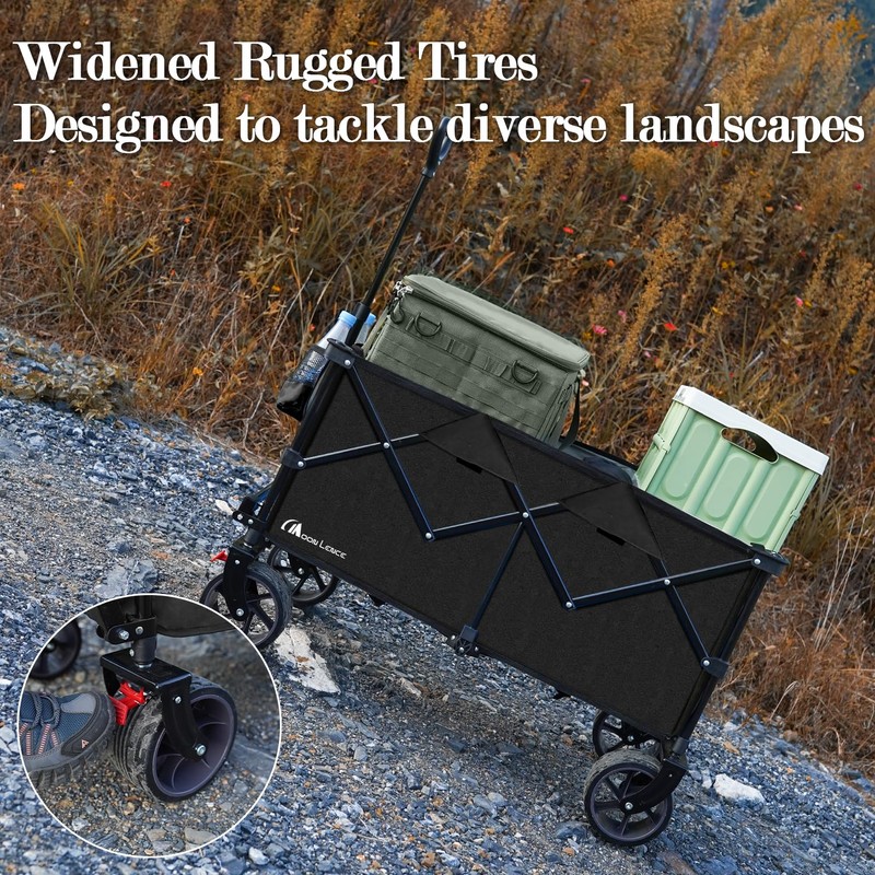 MOON LENCE MOON LENCE Large Collapsible Foldable Wagon Cart, 220L Heavy Duty Folding Utility Wagon with All-Terrain Big Wheels, Suiitable for Garden, Grocery, Shopping, Camping, Beach, Picnics