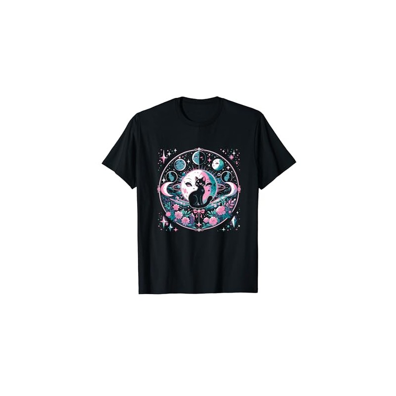 Moon Phases Crystal Witchy Cute Black Cat Kawaii Pastel Goth T-Shirt for Men Women