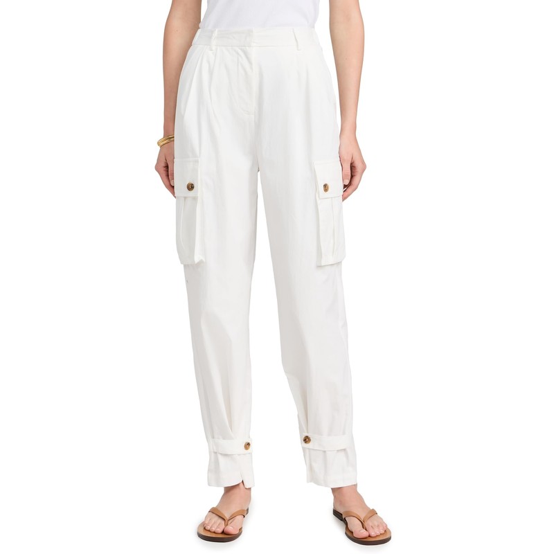 MOON RIVER Women's Cargo Pants, White, S