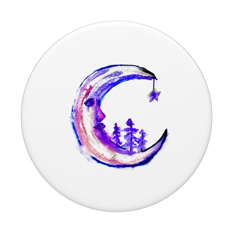 Moon Sad Face Stars Forest Watercolor Art Whimsical Magical PopSockets Grip and Stand for Phones and Tablets