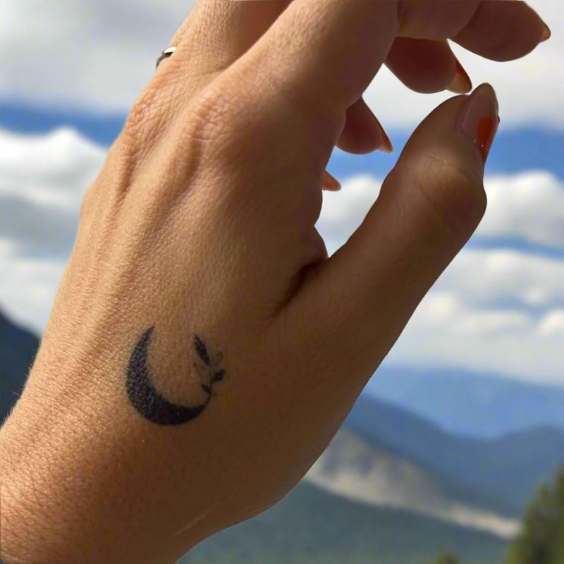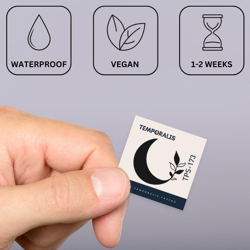 Moon Tattoo Temporalis® Temporary Tattoo Vegan and Waterproof Ink EU Certified Cosmetics Shelf Life 1-2 Weeks [Moon in Buds]