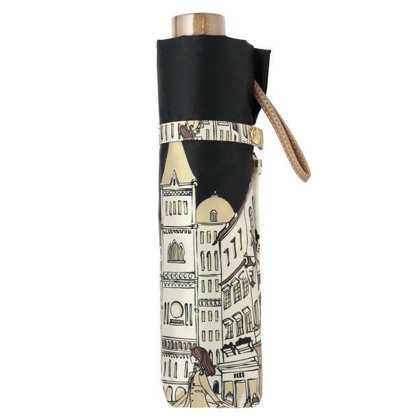 - A woman who walks the European streets with a dash of style. This mini umbrella features a gorgeous and elegant print.