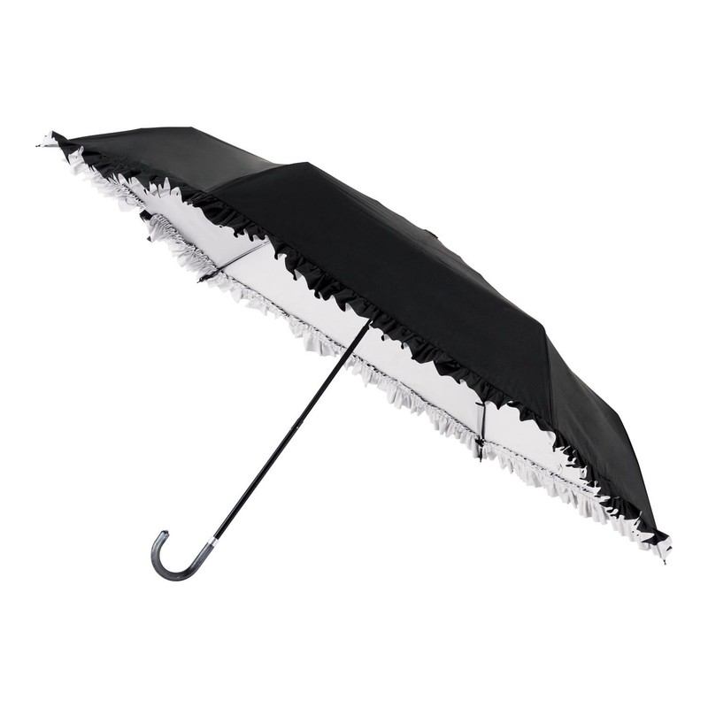 [Moonbat] Esta Parasol Folding Umbrella, Large Size, First Class Light Blocking, UV Ruffle, For Rain or Shine, 31-230-30216, Black, Black