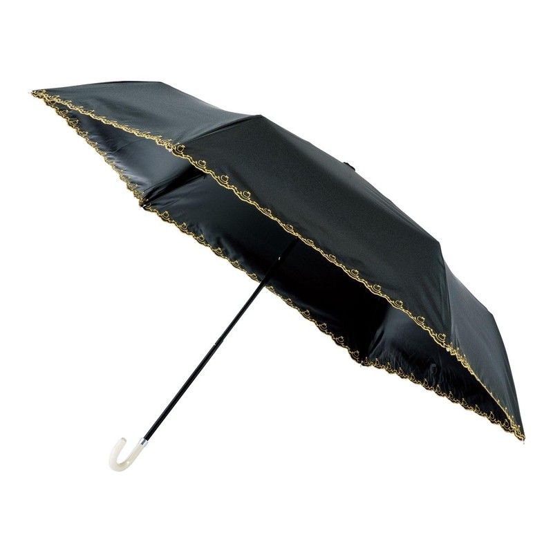 Moonbat [ESTA] Parasol Folding Umbrella, Women's, For Rain or Shine, Light Blocking, Heat Blocking, UV Apple Scallop, 31-230-30263-05, Black