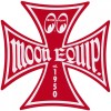 Mooneyes Equipped Maltese Iron Cross sticker/decal. Available in Red or Black, in 3" (small), or 5" (large) sizes.