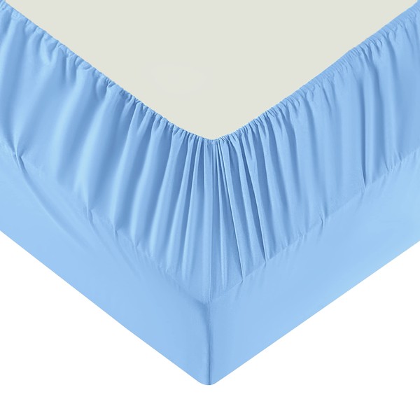 Moonlight Bedding Double Fitted Sheet - 25cm Deep Pockets Ultra Soft Brushed Microfiber Light Blue Double Fitted Bed Sheets Breathable, Fade Resistant Easy Care Double Bed Sheet (137 x 190 Cm)