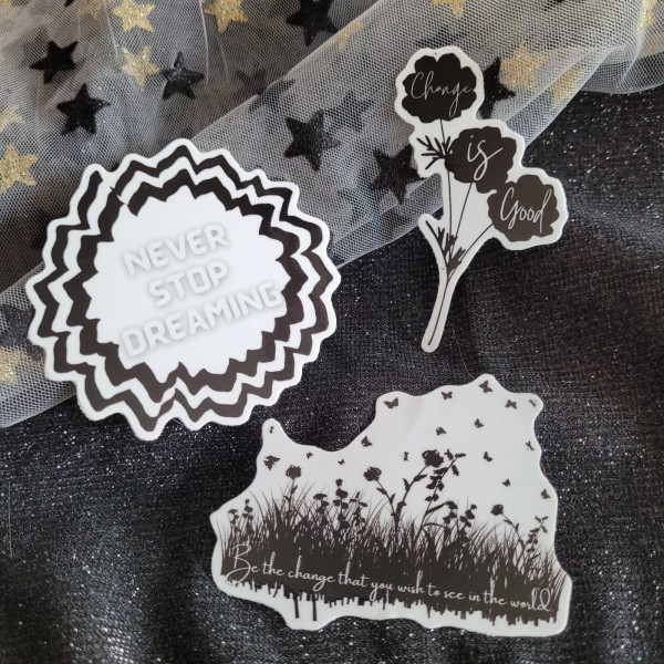 Moonlight Jade Art Three Pack Sticker Set Black & White Inspirational Motivational Stickers Change
