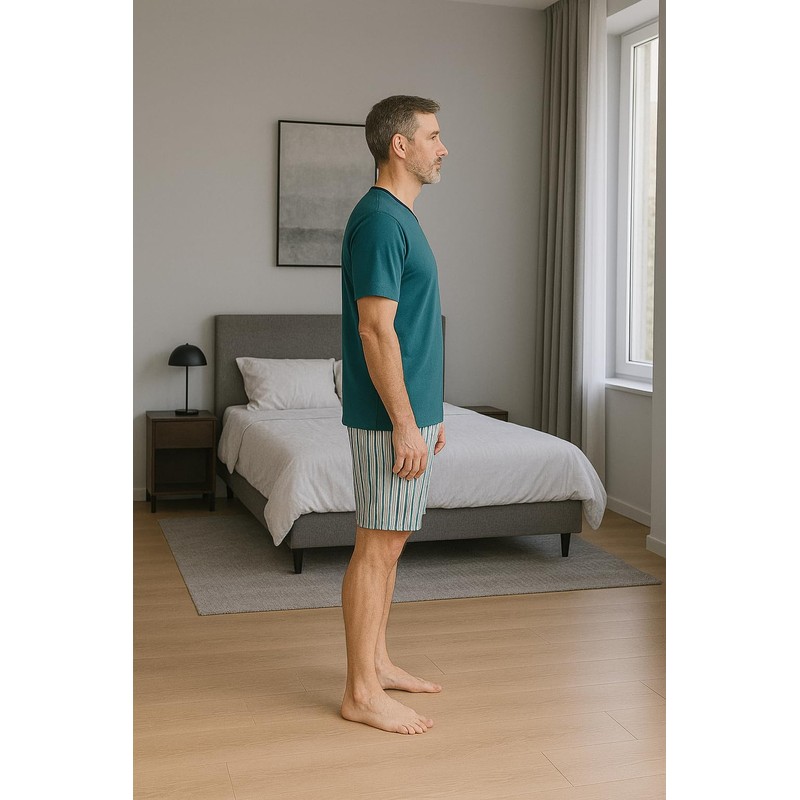 - Men’s pyjama set, short-sleeved t-shirt, 100% cotton.
