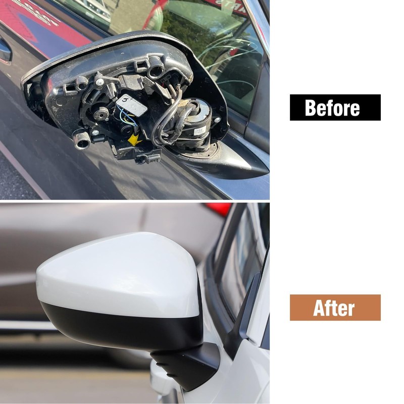 - 【Direct Replacement】These replacement Door Wing Mirror Covers feature a secure snap-on clip design for easy installation. No modification, cutting or drilling required - simply clip them into place. The straightforward installation process can be completed successfully by anyone with minimal effort. Requires no special mechanical skills. The durable clip mechanism ensures a firm hold that won't loosen over time.