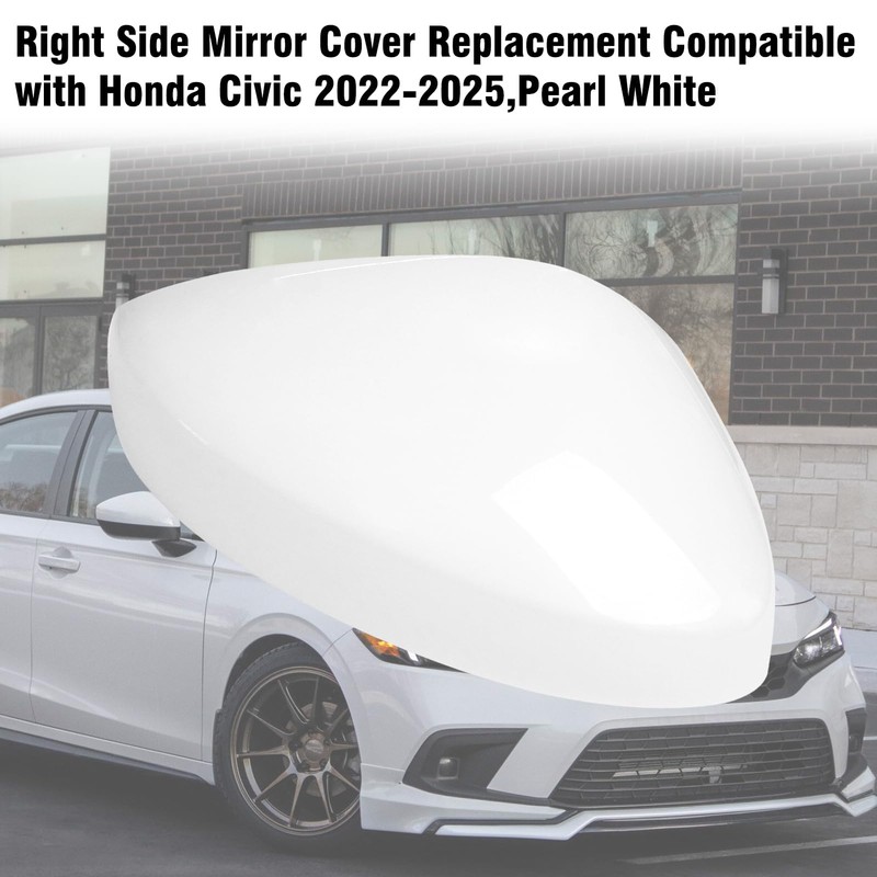 Moonlinks Compatible with Honda Civic 11th Gen 2022-2025 LX EX EX-L Si Sedan Sport Side Mirror Cover Replacement, Pearl White Right Passenger Side Clip-on Mirror Cap WITHOUT Turn Signal