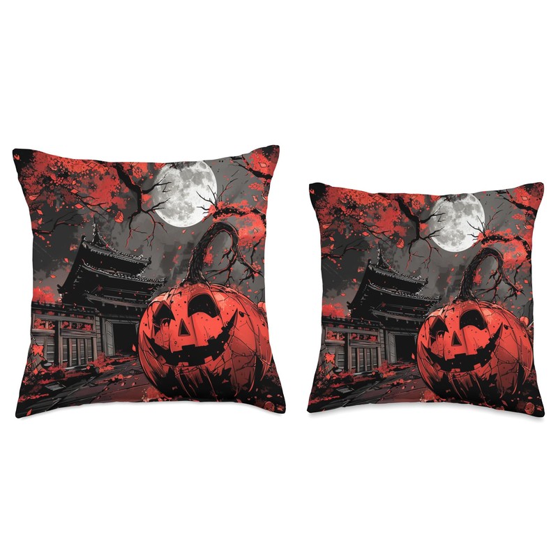 Moonlit Sakura: Halloween’s Spooky Night Throw Pillow