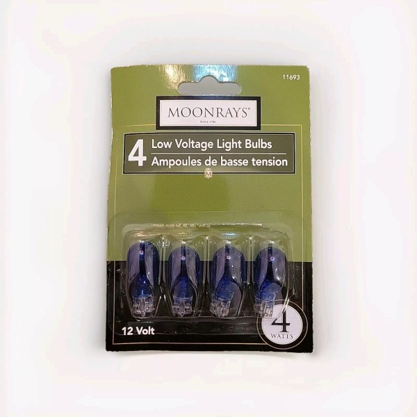 Enhance your outdoor landscape with these four new MoonRays T5 wedge base light bulbs. Emitting a beautiful blue light color, these 4watt bulbs are perfect for creating a serene and relaxing atmosphere in your backyard or garden. Designed for low voltage use, these bulbs are energy efficient and long-lasting, providing you with optimal lighting for years to come.