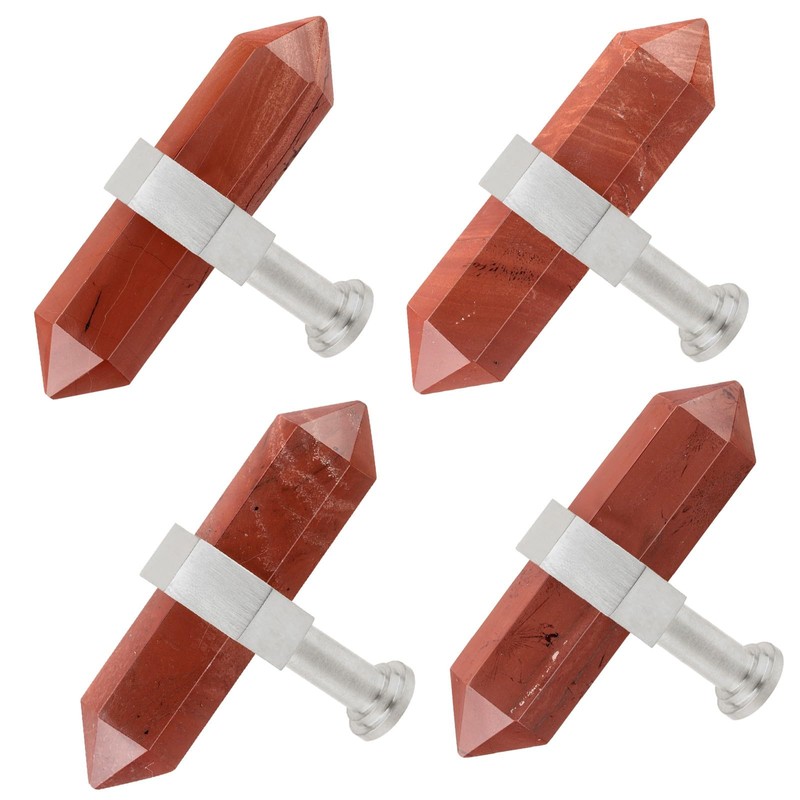 moonsix Pack of 4 Double Pointed Hexagonal Drawer Handles Silver Crystal Stone Knobs with Screws for Kitchen Cabinet Dresser Decor, Red Jasper