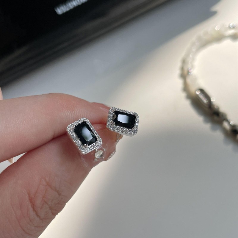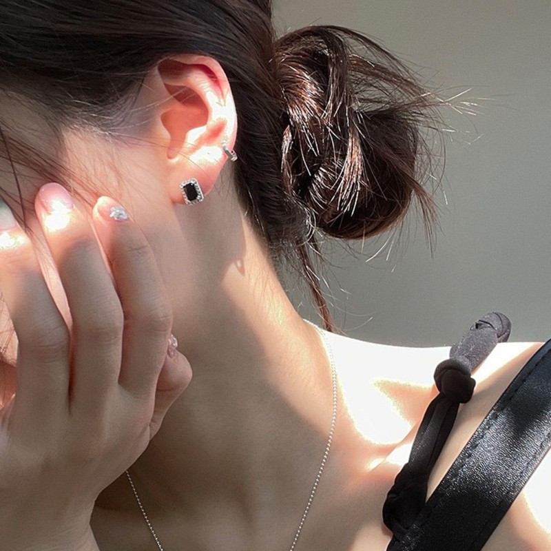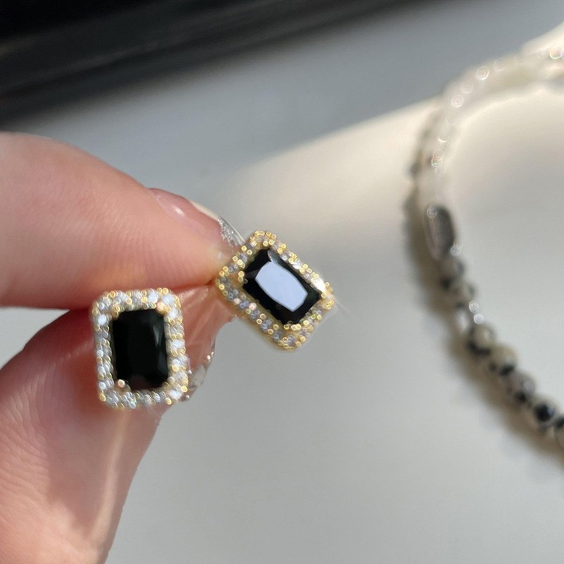 Moonstan Women's Earrings, Popular, Black, Gold, Silver, Hypoallergenic, Cubic Zirconia, Square, Sparkling, Brass, Cubic Zirconia