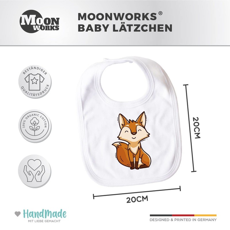 - Cute animal motifs and small mouths, which simply fit together perfectly. We also thought of and printed this cute baby bib with a cute little fox. ;-)