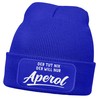 MoonWorks® Herren Beanie mit Patch Lieblingsgetränk Party Strickmütze Spruch Aufdruck Lustig Mütze Männer Blau Unisize