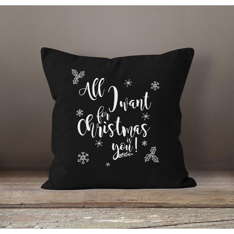 MoonWorks Romantic Cushion Cover All I Want for Christmas is You Black Jumper