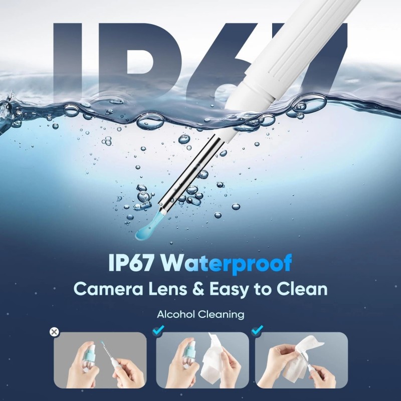 • Easy to Use: Connect easily via WiFi and Bluetooth to the earwax camera. The ear cleaner is equipped with a 130mAh battery, it can be used for 65 minutes when fully charged, and can be on standby for 30 days. IP67 waterproof otoscope, it can be washed with water or wiped with alcohol cotton after us, please do not immerse the entire otoscope in water