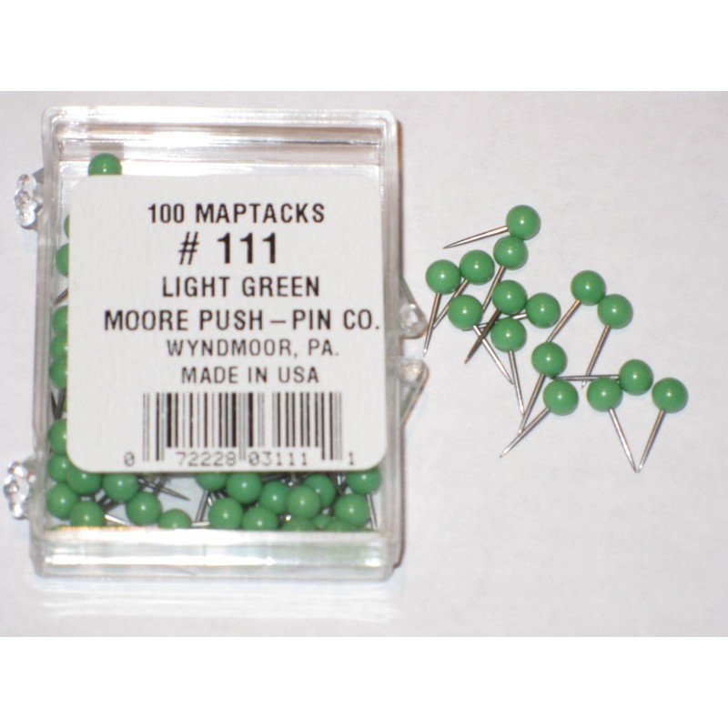 Moore 1/8" Map Tack Push Pins - Light Green (box of 100 pins)