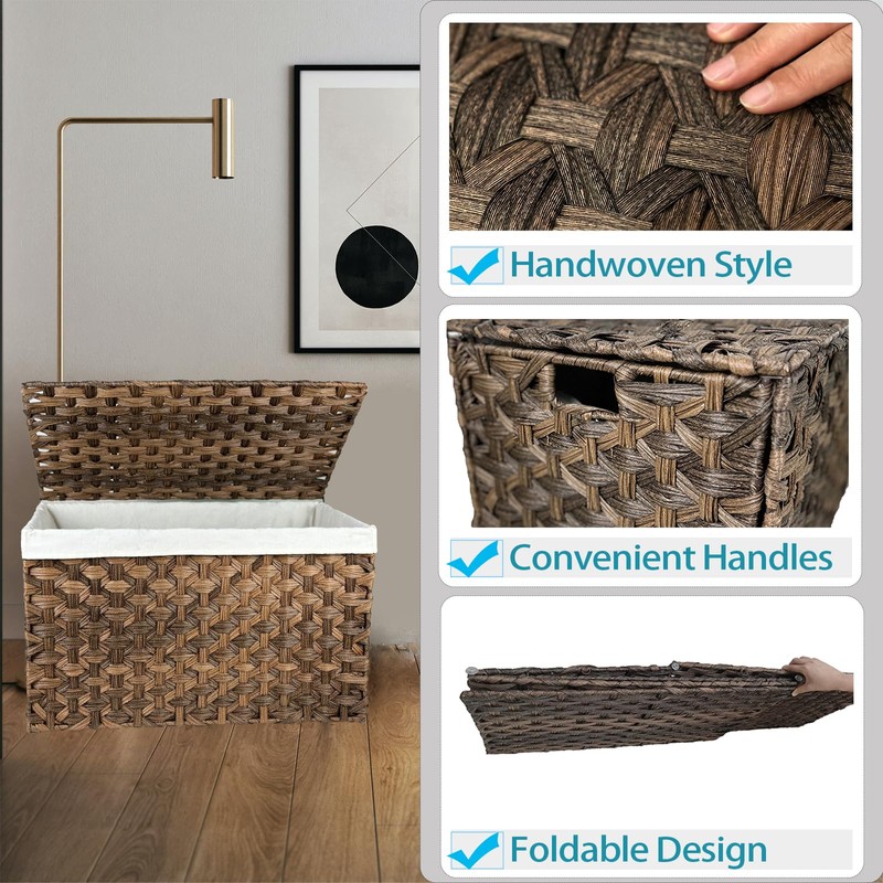 • [Washable Lining Bag] The included cotton lining bag is easily washable, ensuring the cleanliness of your stored items. This lining bag is securely fixed on the wicker basket with lid using two ropes, providing added stability and convenience