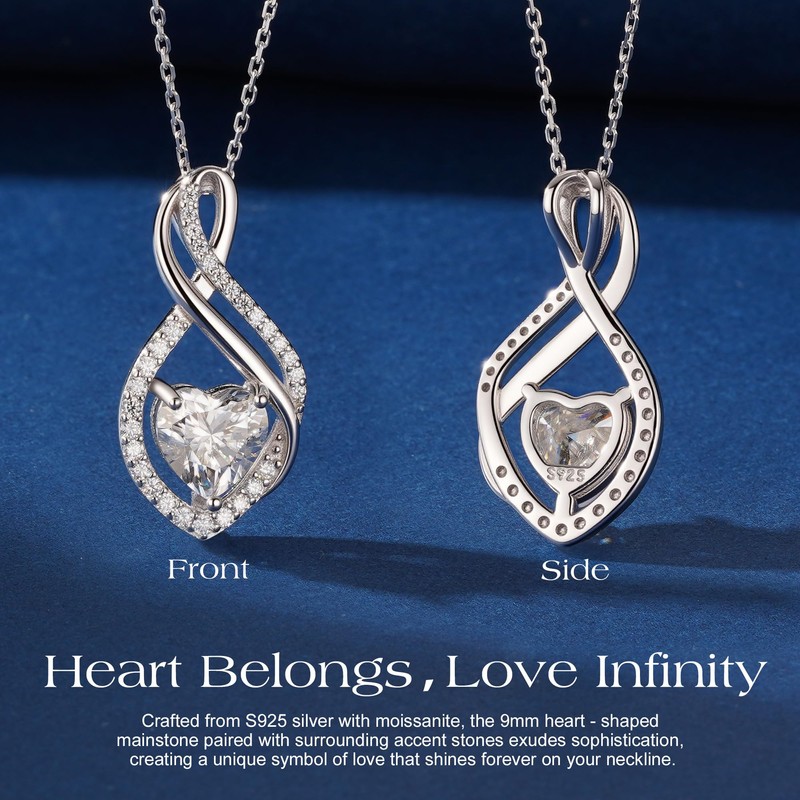 MOOSEA Gifts for Women, Moissanite Infinity Heart Necklace 925 Sterling Silver Annniversary Wedding bridesmaid Proposal Gifts for Wife Mom Girlfriend 2ct Moissanite Pendant Necklace Jewelry