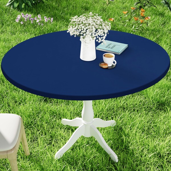 Moosfor Round Spandex Table Cloth, Elastic Fitted Waterproof Tablecloths for 36"-44" Tables, Stretch Washable Picnic Table Cover for Camping, Dining, Indoor and Outdoor, Navy