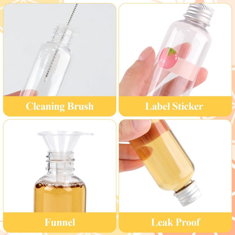 - Wide Application: The small juice bottles with lids are suitable for families, camping, picnics, travel, etc. It can be used to store various liquids such as alcohol, juice, honey, milk, condiments, etc.