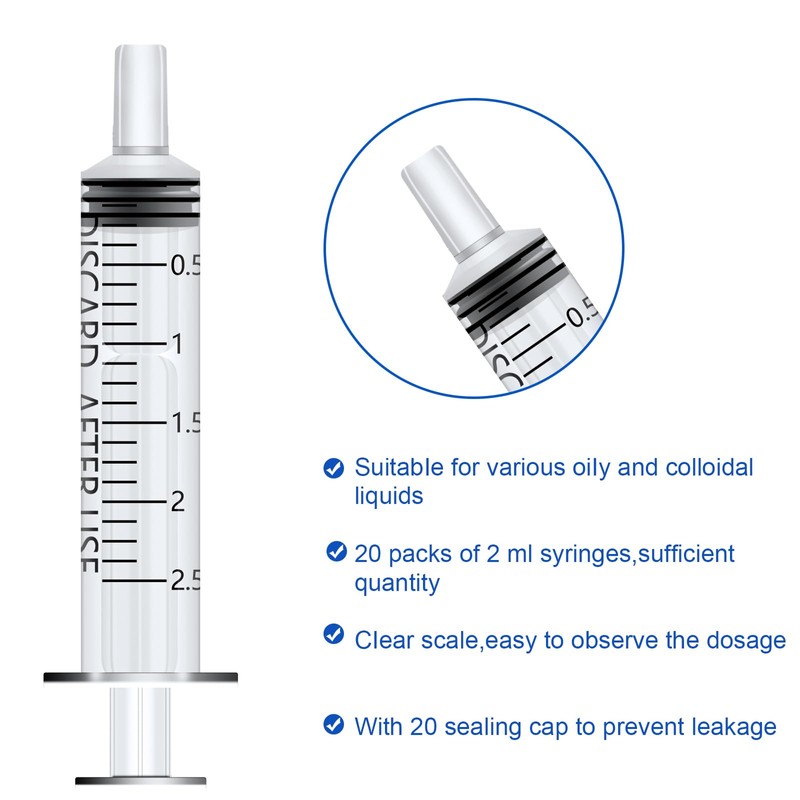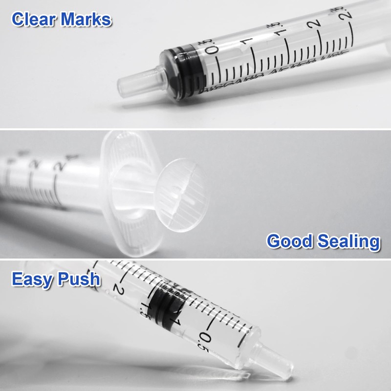 - High-quality material: the 2 ml syringes without needles are made of high-quality plastic, which is waterproof and durable. The rubber plastic plunger of the plastic syringe is strong and not easy to break. Odorless, non-toxic and safe to use.