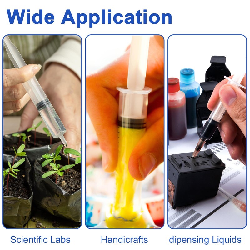 - Multiple use: the individual package plastic syringe can be used in scientific laboratories, colostrum collection, animal feeding, hobby crafts or glue spraying, etc. Suitable for industrial adhesives, glues, perfumes, lubricants, sealants, essential oils, lip gloss, perfume, etc.